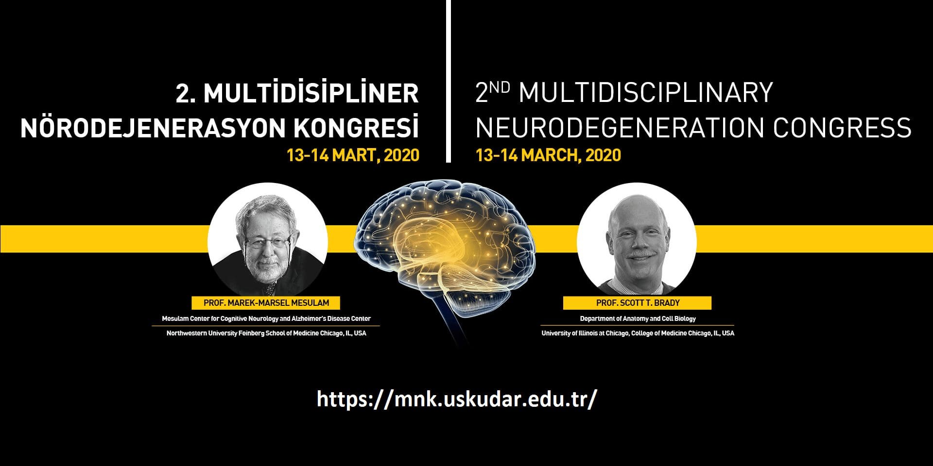 2. Multidisipliner Nörodejenerasyon Kongresi, Üsküdar Üniversitesi’nin ev sahipliğinde 13 Mart – 14 Mart 2020 tarihleri arasında düzenleniyor. Açılış konuşmalarının Prof.Dr. Marek Marsel Mesulam (Northwestern University) ve Prof. Dr. Scott T Brady (University of Illinois at Chicago) tarafından yapılacağı Kongrede Nörodejeneratif hastalıkların tanı ve tedavisi üzerine klinik, in vivo, in vitro ve mühendislik çalışmaları Nöroloji, Psikiyatri, Farmakoloji, Fizyoloji, Anatomi, Moleküler Biyoloji ve Genetik, Biyoinformatik, Biyomühendislik alanlarında araştırmacıların katılacağı multidisipliner bir yaklaşımla ele alınacak.