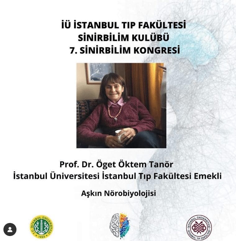 Dernek Başkanımız Sayın Prof. Dr. Öget Öktem Tanör, İstanbul Üniversitesi İstanbul Tıp Fakültesi Sinirbilim Kulübü tarafından organize edilen 7. Sinirbilim Kongresi’nde “Aşkın Nörobiyolojisi” başlıklı konuşmasını yapacaktır. Program 29 Mayıs 2022 pazar günü saat 16:40‘da İstanbul Tıp Fakültesi Aziz Sancar Amfisi’nde gerçekleştirilecektir.