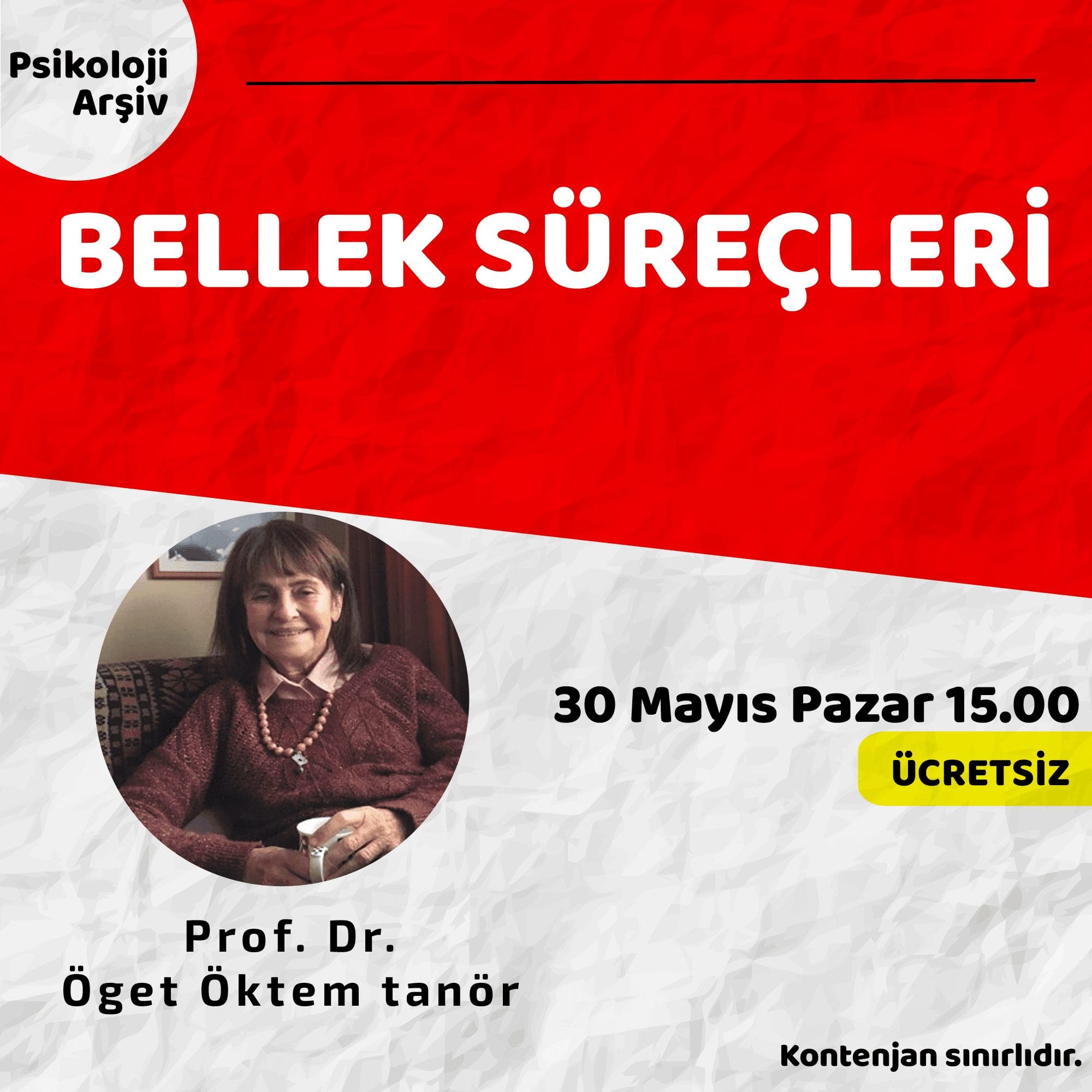Bilgi ve Kayıt Formu: https://www.psikolojiarsiv.com/bellek-surecleri-oget-oktem-tanor/